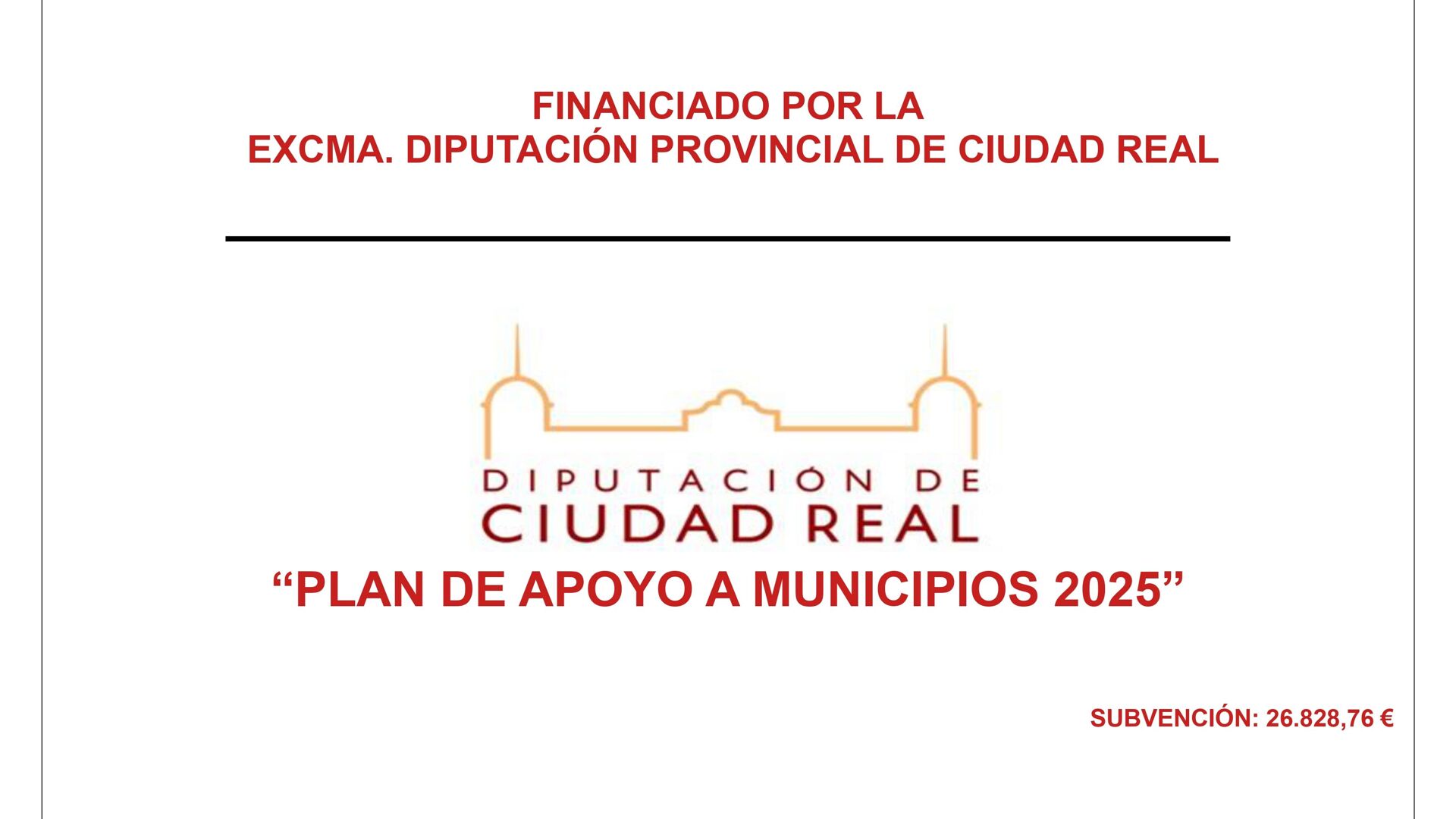 El Ayuntamiento de Alcoba ha sido beneficiario de una subvención concedida por la Excma. Diputación Provincial de Ciudad Real en el marco del Plan de Apoyo a Municipios 2025.