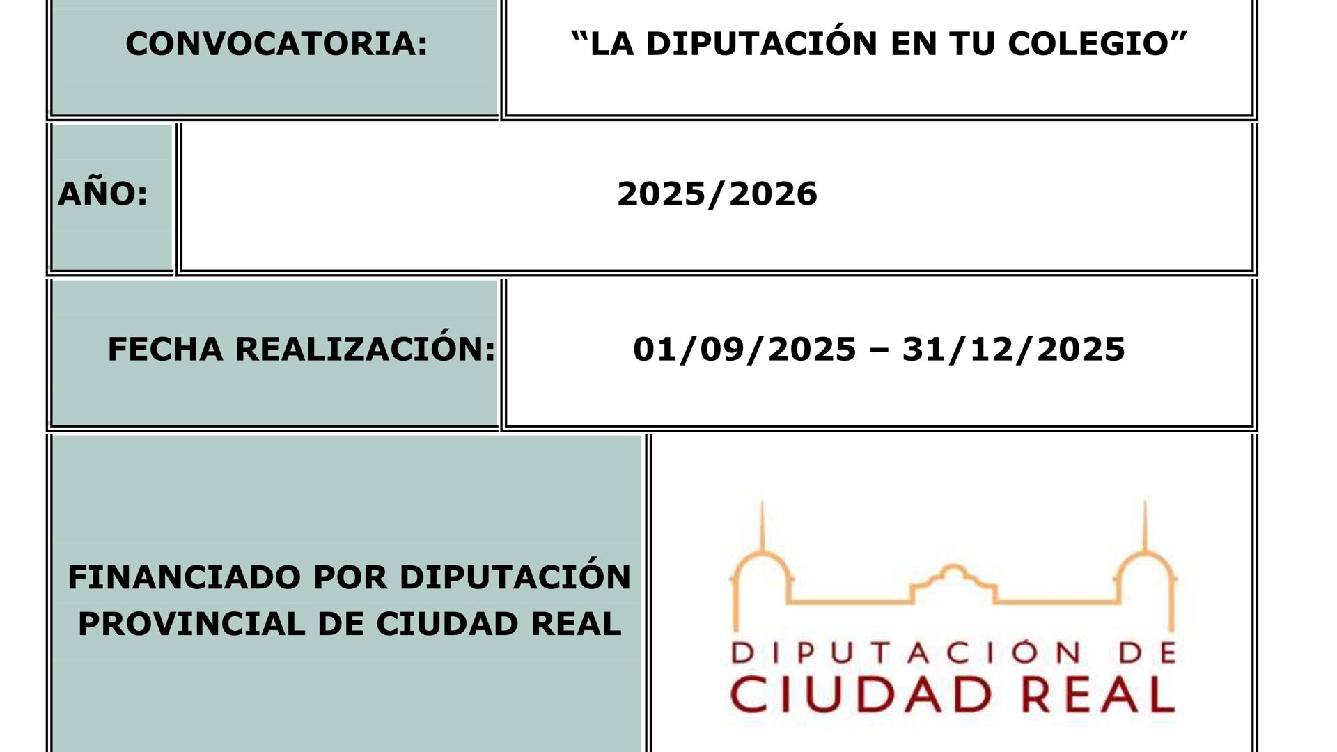 El Ayuntamiento de Alcoba informa que la Excma. Diputación Provincial de Ciudad Real ha preconcedido la subvención denominada "La Diputación en tu Colegio 2025-2026".